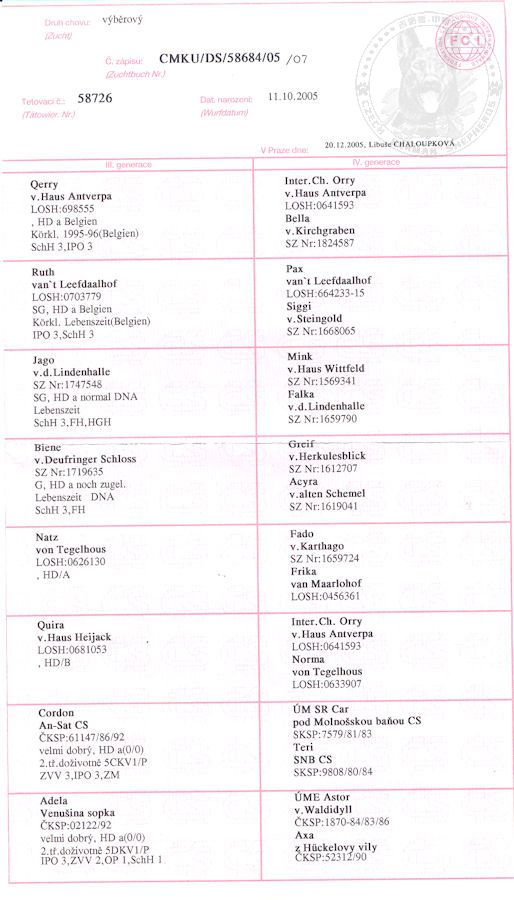 FCI国际血统证编号: Titled:ZVV1;ZVV2;ZVV3;BH;IPO3;