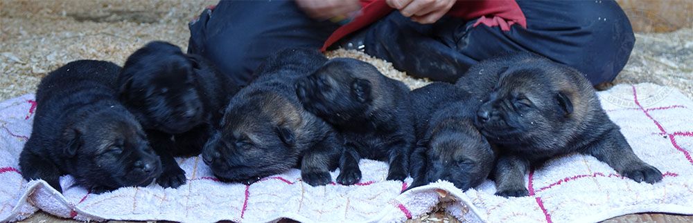 幼犬的毛色将非常深,他们的骨量大,头版很好,结构漂亮,他们大多数会是中大体型犬。我们相信他们未来的动力会很强。